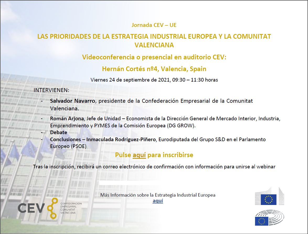 A la luz de los avances que la Comisión Europea está llevando a cabo en su Estrategia Industrial, la Confederación Empresarial de la Comunitat Valenciana (CEV) ha organizado una jornada sobre las prioridades de la Estrategia Industrial Europea.